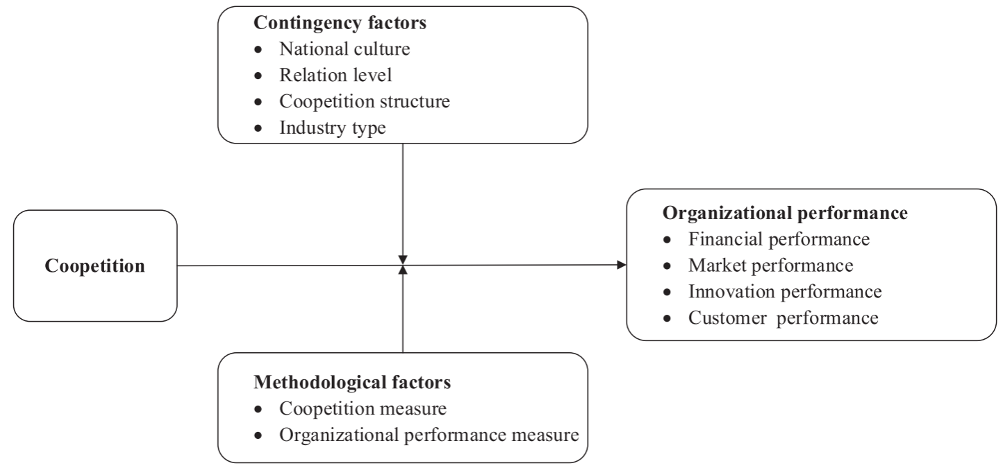 本研究使用元分析系统地探究了现有研究中关于竞合与组织绩效关系的效应大小,研究框架如图1所示。